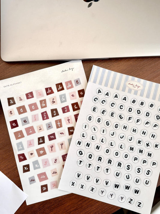 Planche de stickers lettres tampons