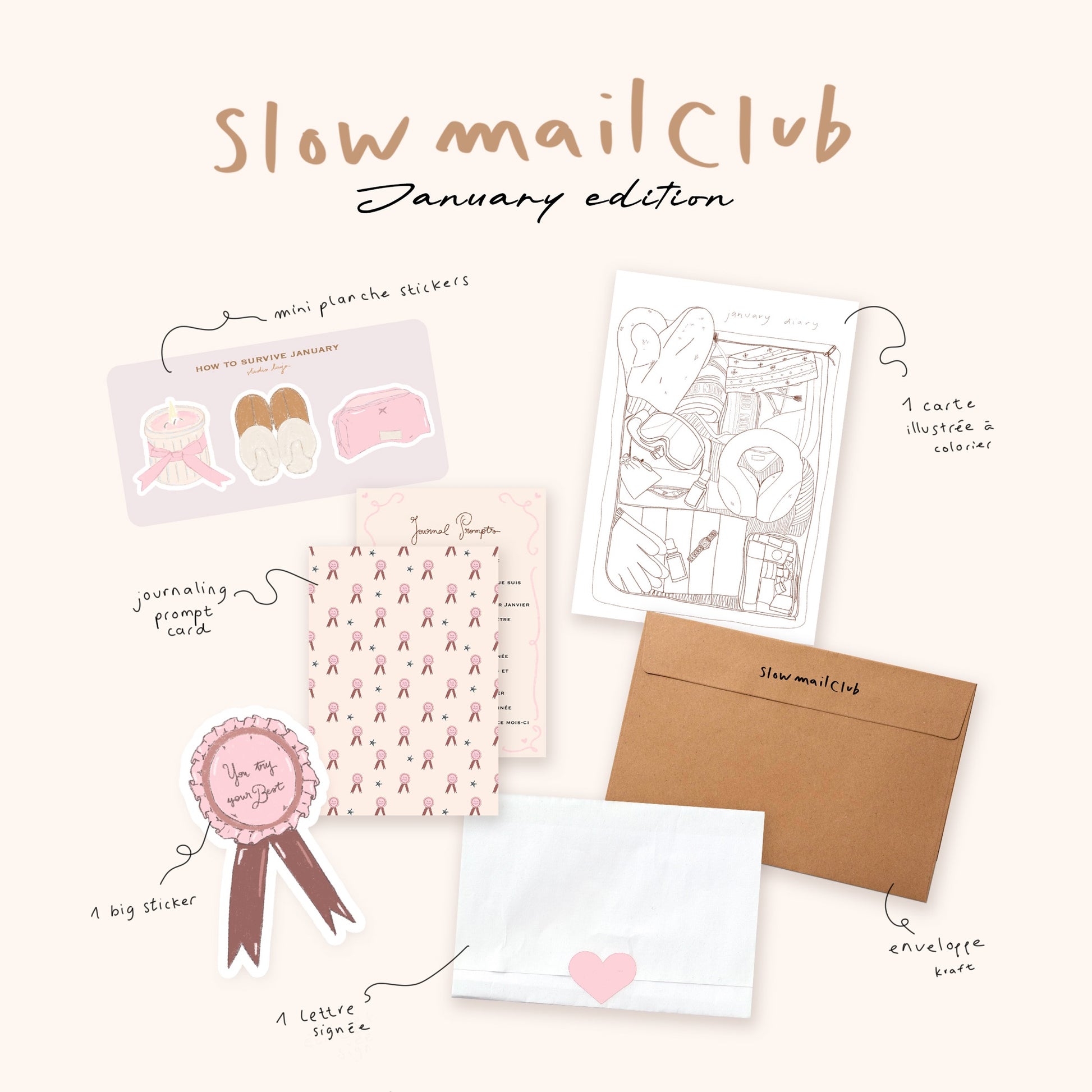 Le Slow Mail Club de Janvier comprend :Â